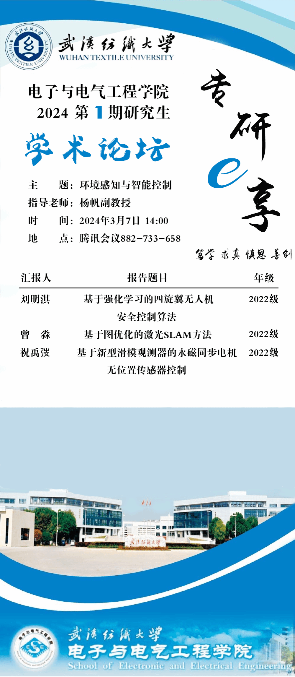 学术预告:第500期研究生学术论坛暨电子与电气工程学院2024年第1期研究生学术论坛