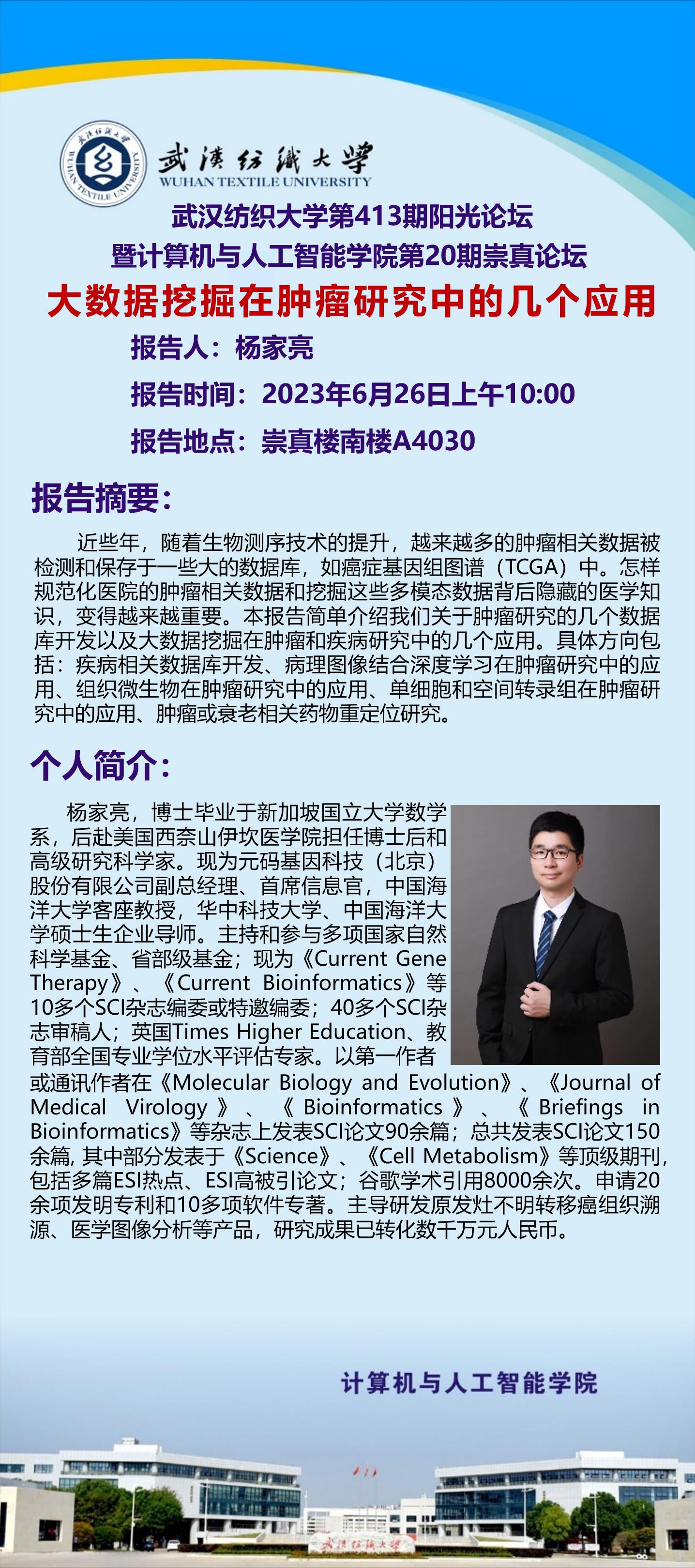 学术预告:第413期阳光论坛大数据在肿瘤研究中的几个应用