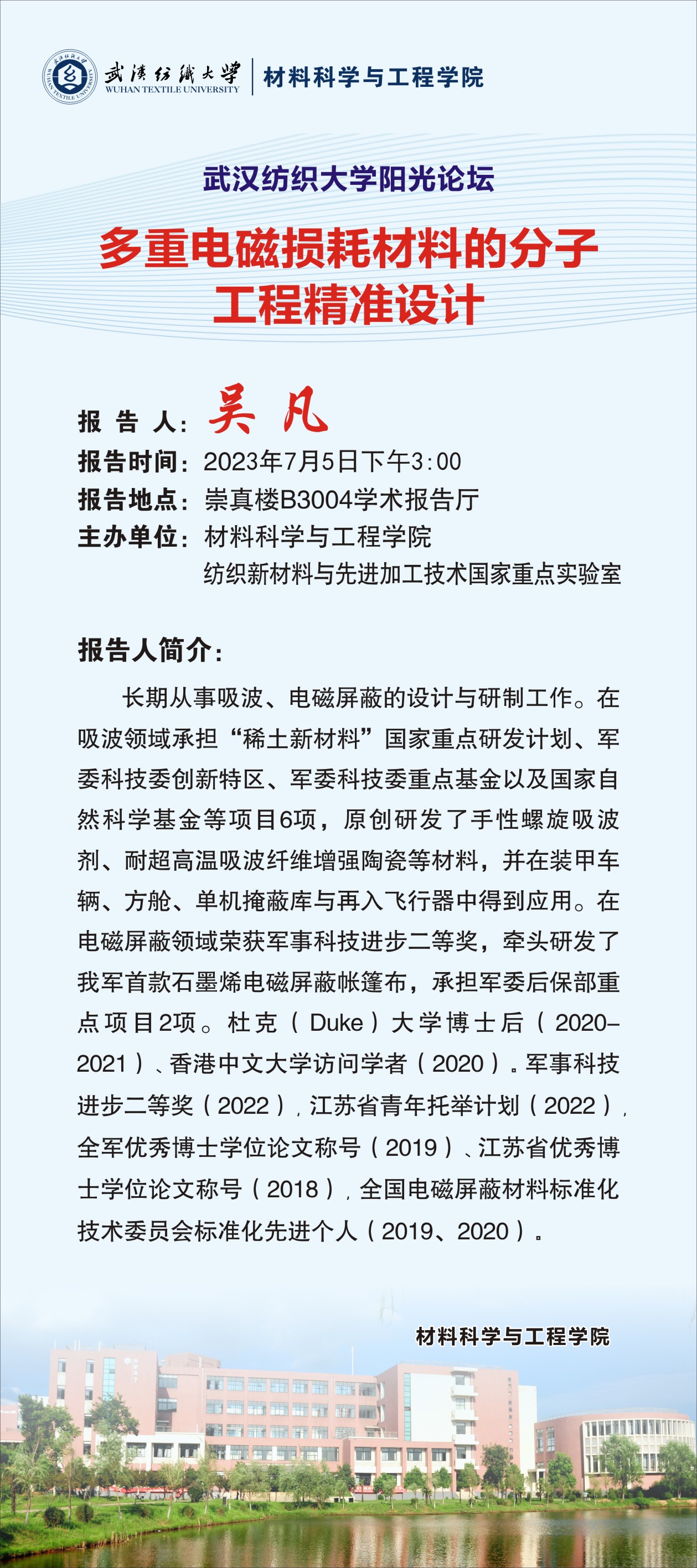 武汉纺织大学第418期阳光论坛暨材料学院2023年第5期阳光论坛