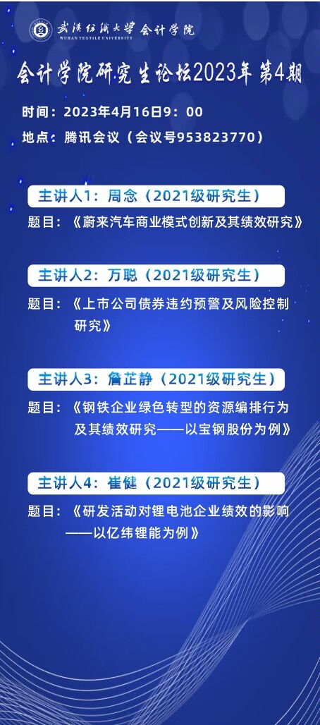 学术预告:第255期研究生学术论坛暨会计学院2023年第4期研究生学术论坛
