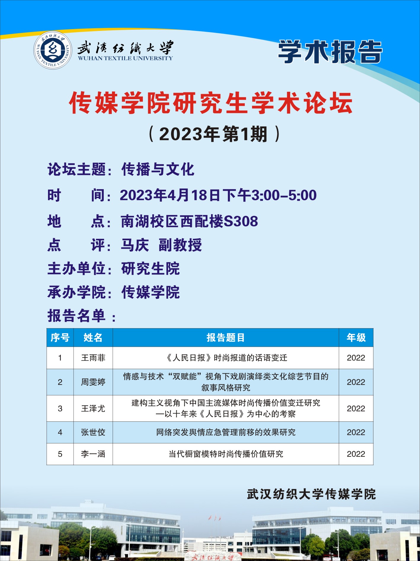 学术预告:第258期研究生学术论坛暨传媒学院2023年第1期研究生学术论坛