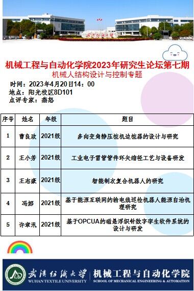 学术预告:第261期研究生学术论坛暨机械工程与自动化学院2023年第7期研究生学术论坛