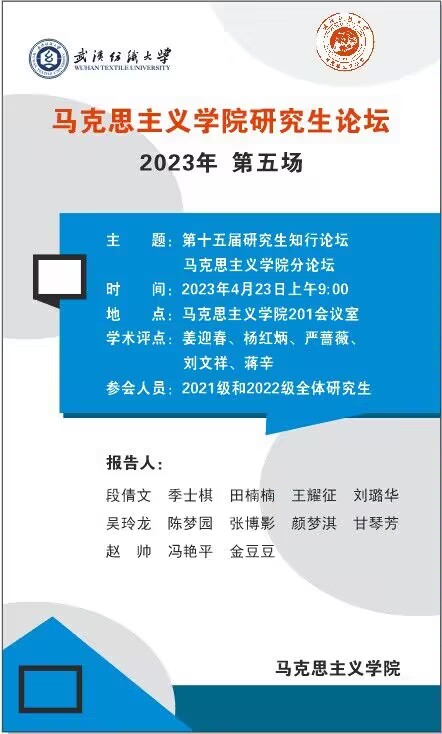 学术预告:第273期研究生学术论坛暨马克思主义学院2023年第5期研究生学术论坛