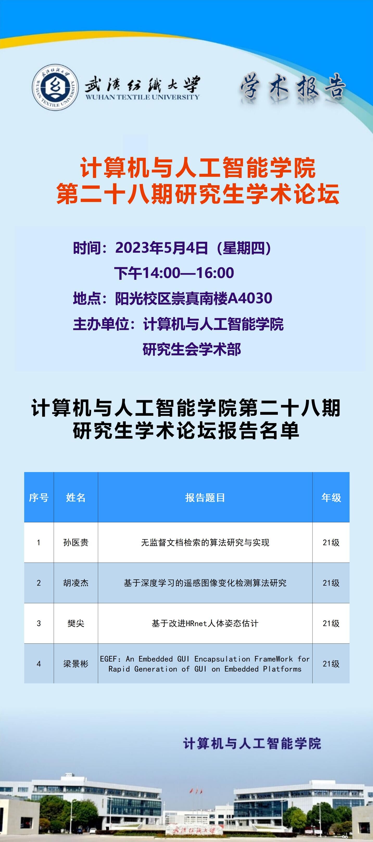 学术预告:第281期研究生学术论坛暨计算机与人工智能学院2023年第5期研究生学术论坛