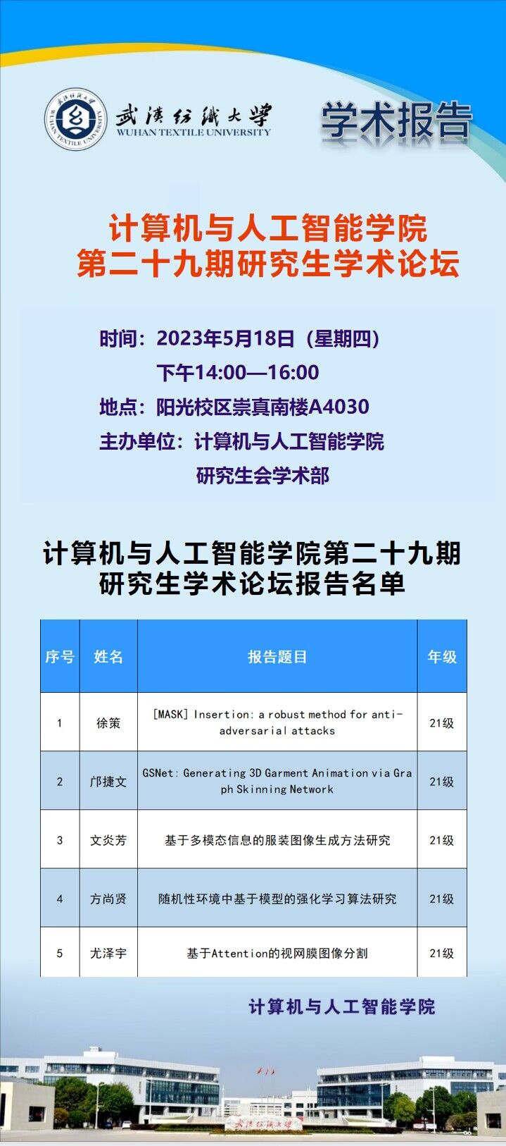 学术预告:第293期研究生学术论坛暨计算机与人工智能学院2023年第6期研究生论坛