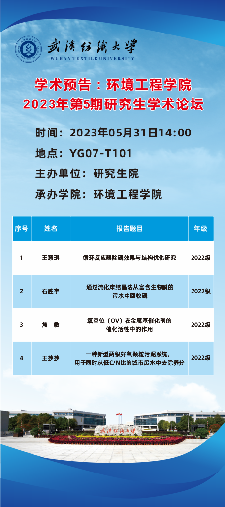 学术预告:第350期研究生学术论坛暨环境工程学院2023年第5期研究生学术论坛