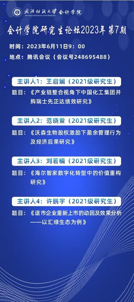 学术预告:第315期研究生学术论坛暨会计学院2023年第7期研究生学术论坛