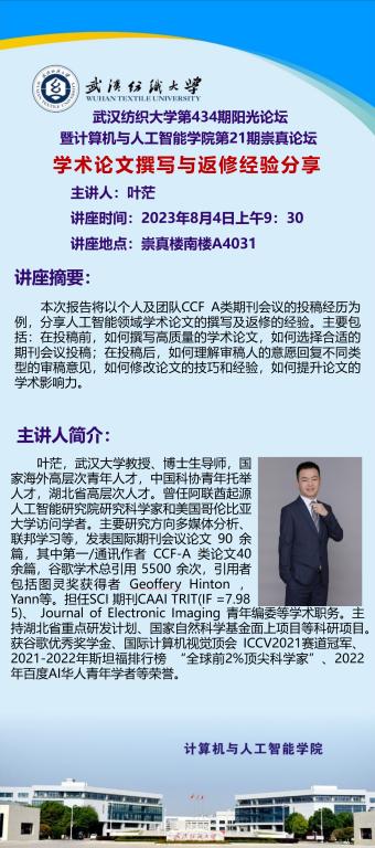 学术预告:第434期阳光论坛学术论文撰写与返修经验分享