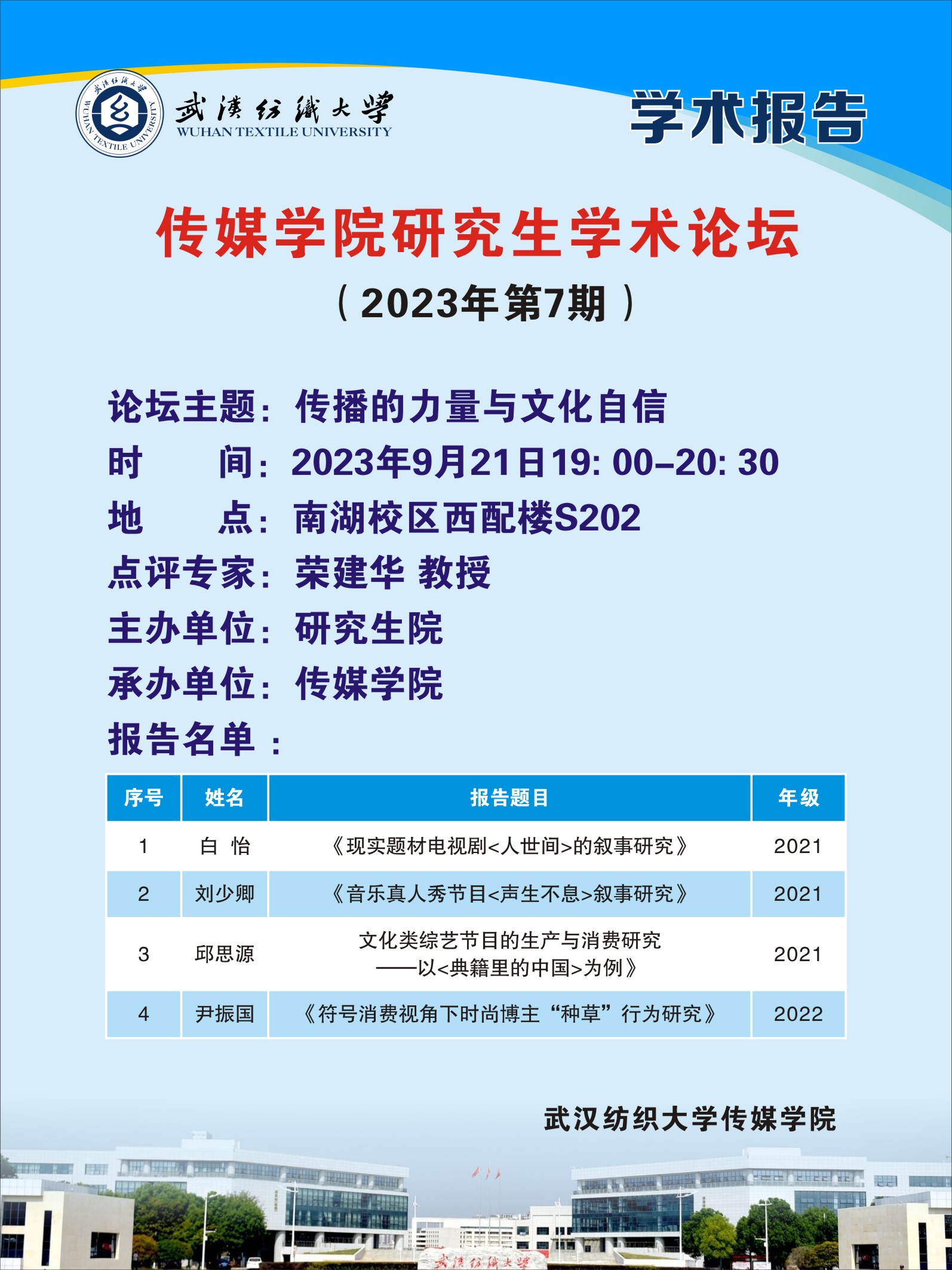 学术预告:第334期研究生学术论坛暨传媒学院2023年第7期研究生学术论坛