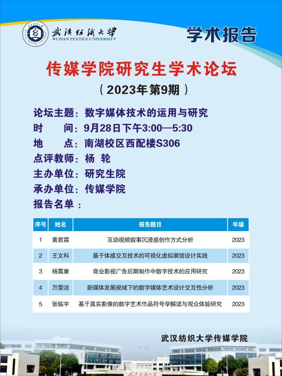 学术预告:第339期研究生学术论坛暨传媒学院2023年第9期研究生学术论坛