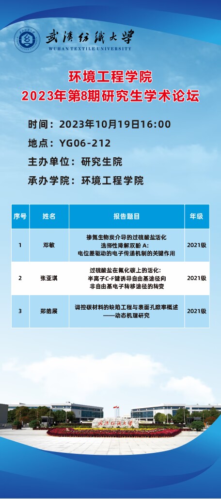学术预告:第362期研究生学术论坛暨环境工程学院2023年第8期研究生学术论坛
