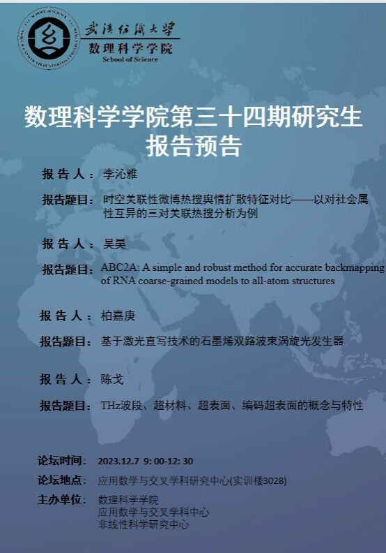 学术预告:第461期研究生学术论坛暨数理科学学院2023年第34期研究生学术论坛